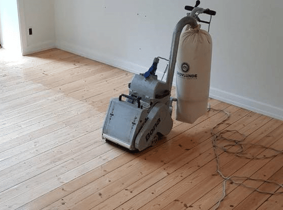 En afhøvling af et trægulv er den mest dybdegående behandling af gulvet. Her bruger gulvmanden slibepapir med en lav kornstørrelse. Det skaber den groveste behandling, som fjerner de øverste 2-4 milimeter af træet.
