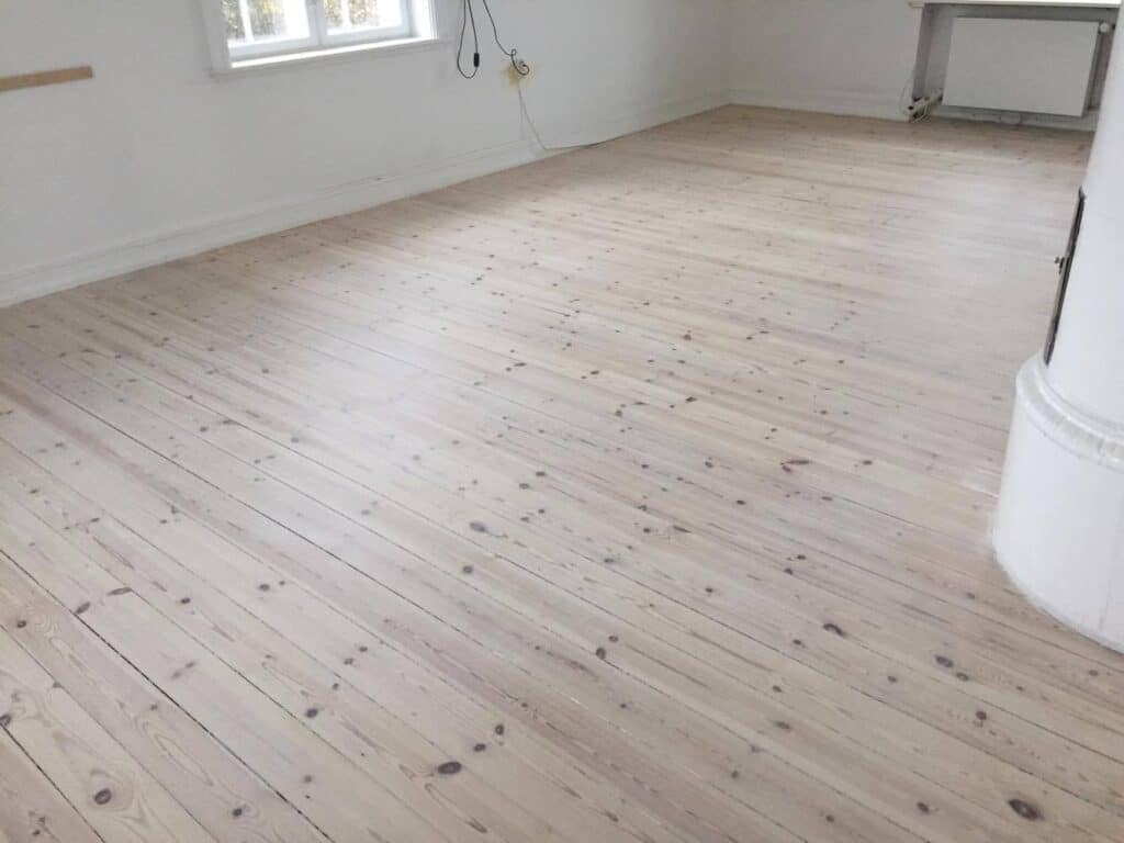 (Gulvet er efterbehandlet med hvid lud og hvid sæbe)